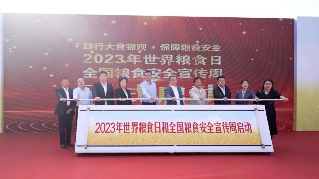 今天上午,由市糧食和物資局、市農(nóng)業(yè)農(nóng)村委、市婦聯(lián)、市教委、市科技局聯(lián)合主辦的天津世界糧食日和全國糧食安全宣傳周活動(dòng)啟動(dòng)儀式在利達(dá)糧油公司隆重舉辦。市發(fā)展改革委黨組成員,市糧食和物資局黨組書記、局長(zhǎng)韓學(xué)武,食品集團(tuán)黨委書記、董事長(zhǎng)萬守朋,紅橋區(qū)區(qū)委常委、副區(qū)長(zhǎng)蔡寧,市農(nóng)業(yè)農(nóng)村委二級(jí)巡視員、總農(nóng)藝師張建樹,市婦聯(lián)黨組成員、副主席白琳琳,食品集團(tuán)總經(jīng)理助理、利達(dá)糧油公司黨委書記、董事長(zhǎng)、市糧食行業(yè)協(xié)會(huì)會(huì)長(zhǎng)戈立新,市精神文明辦創(chuàng)建處處長(zhǎng)王林,市教委學(xué)生處副處長(zhǎng)于京京,市科技局社農(nóng)處四級(jí)調(diào)研員吳曉,市糧油學(xué)會(huì)理事長(zhǎng)劉霞,共同啟動(dòng)天津市2023年世界糧食日和全國糧食安全宣傳周活動(dòng)。